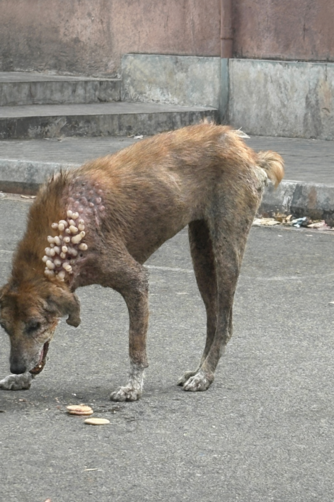 This dog, in particular, seems to carry a heavier burden. The visible infection is not just a health issue—it is a reflection of a larger problem. Lack of awareness, limited access to veterinary care, and indifference all contribute to situations like this. Mango worms thrive in environments where hygiene is poor and medical attention is absent. For stray animals, this creates a cycle that is difficult to break.