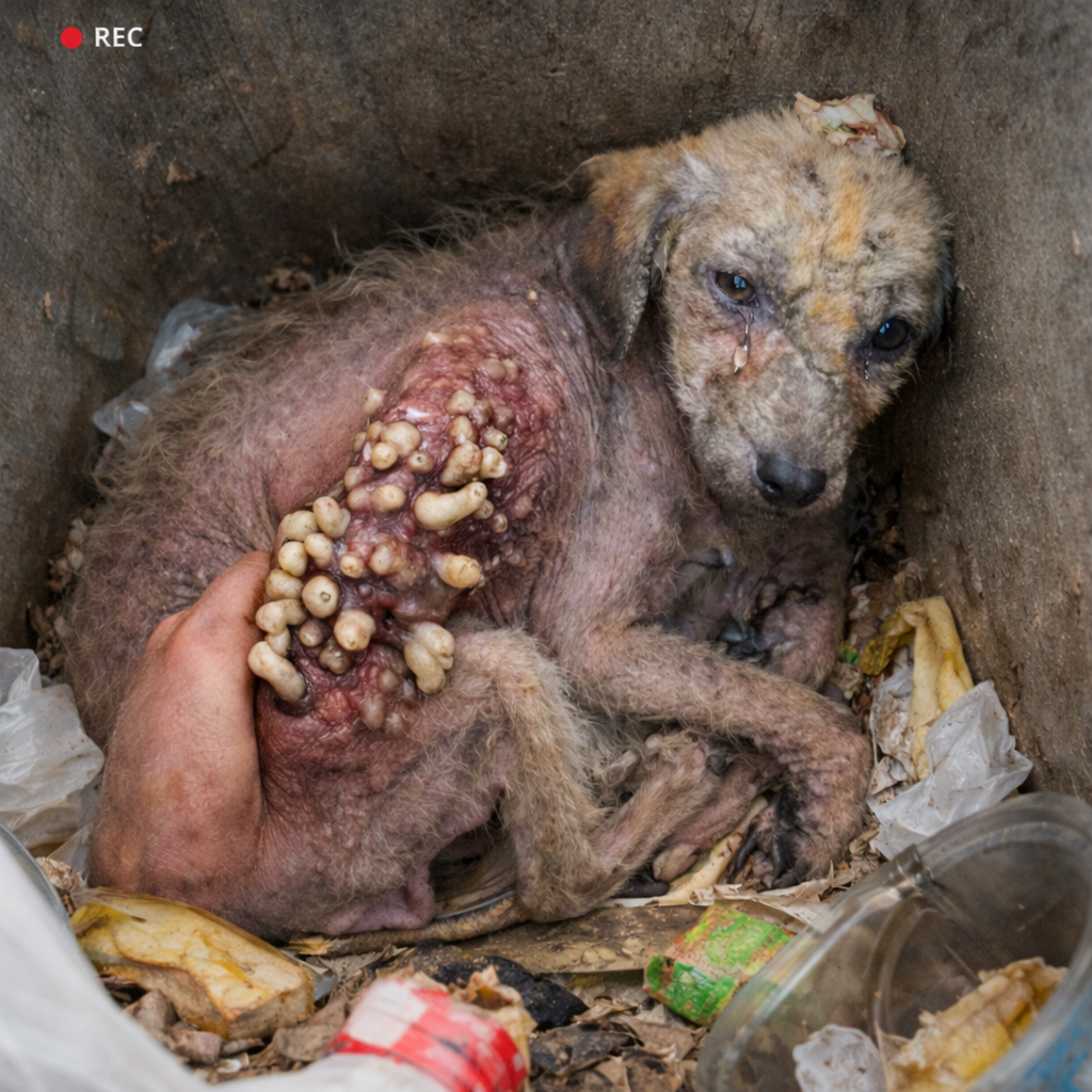 Every rib was visible beneath her thin frame. Her coat, once meant to protect her, had grown uneven and sparse, offering little warmth against the world around her.