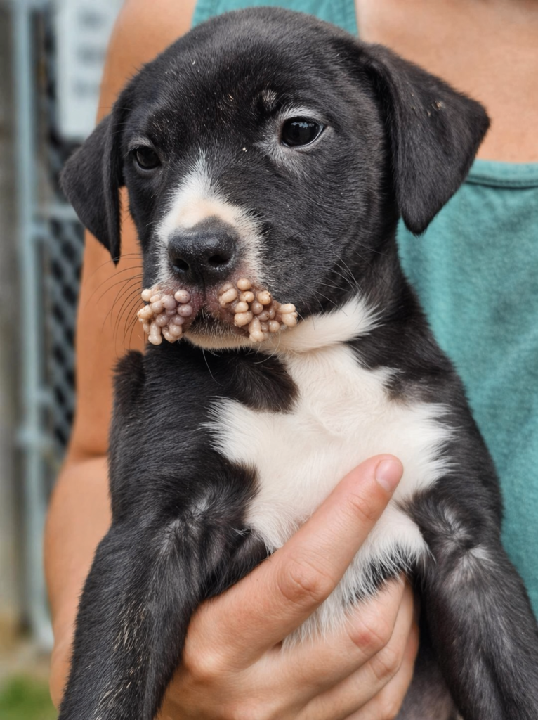 It was a sight so painful, so disturbing, that I couldn’t believe how such a small, innocent creature could be suffering like this. His lips were swollen, infected, and crawling with life that didn’t belong there. The puppy wasn’t barking or crying loudly—he was quiet… too quiet.